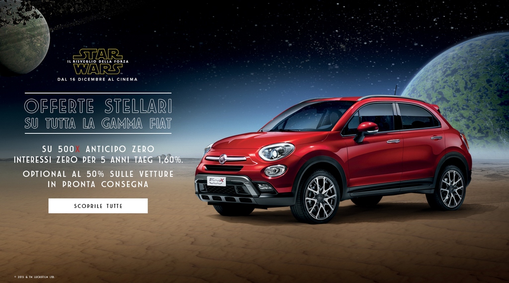 In occasione del lancio del nuovo film Star Wars Il Risveglio della Forza, Fiat, Lancia e Alfa Romeo propongono forti offerte con la promozione Offerte Stellari Continua...